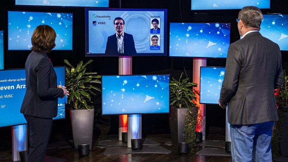 Für die Entwicklung des Codescanners VUSC wurden Dr. Steven Arzt und seine Mitarbeiter Sebald Ziegler und Marc Miltenberger mit dem dritten Platz beim Fraunhofer – Ideenwettbewerb „Ramp up Resilience“ ausgezeichnet. Die Preisverleihung fand im Rahmen des Fraunhofer-Symposiums »Netzwert « am 24. März 2021 statt.